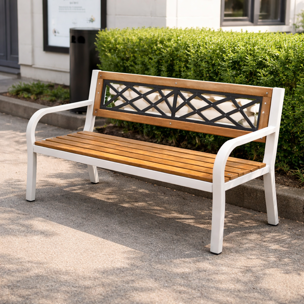 Sessel mit stabiler Konstruktion und bequemer Sitzfläche, geeignet für den Einsatz im Wohnzimmer, auf dem Balkon oder im Garten. Die Armlehnen und die leicht geneigte Rückenlehne unterstützen eine entspannte Sitzhaltung im Alltag.