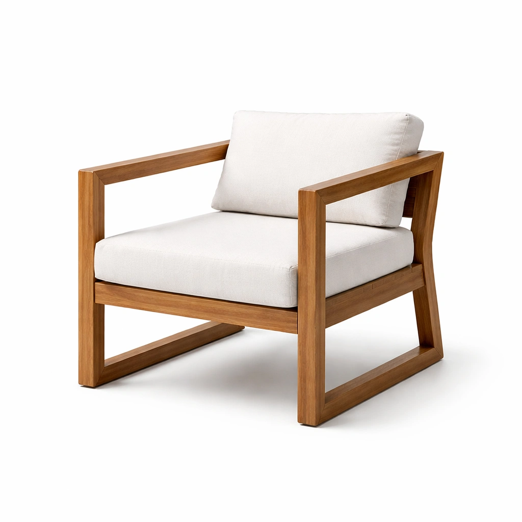 Sessel Teakholz mit Baumwollgeflecht und Polyesterbezug Beige