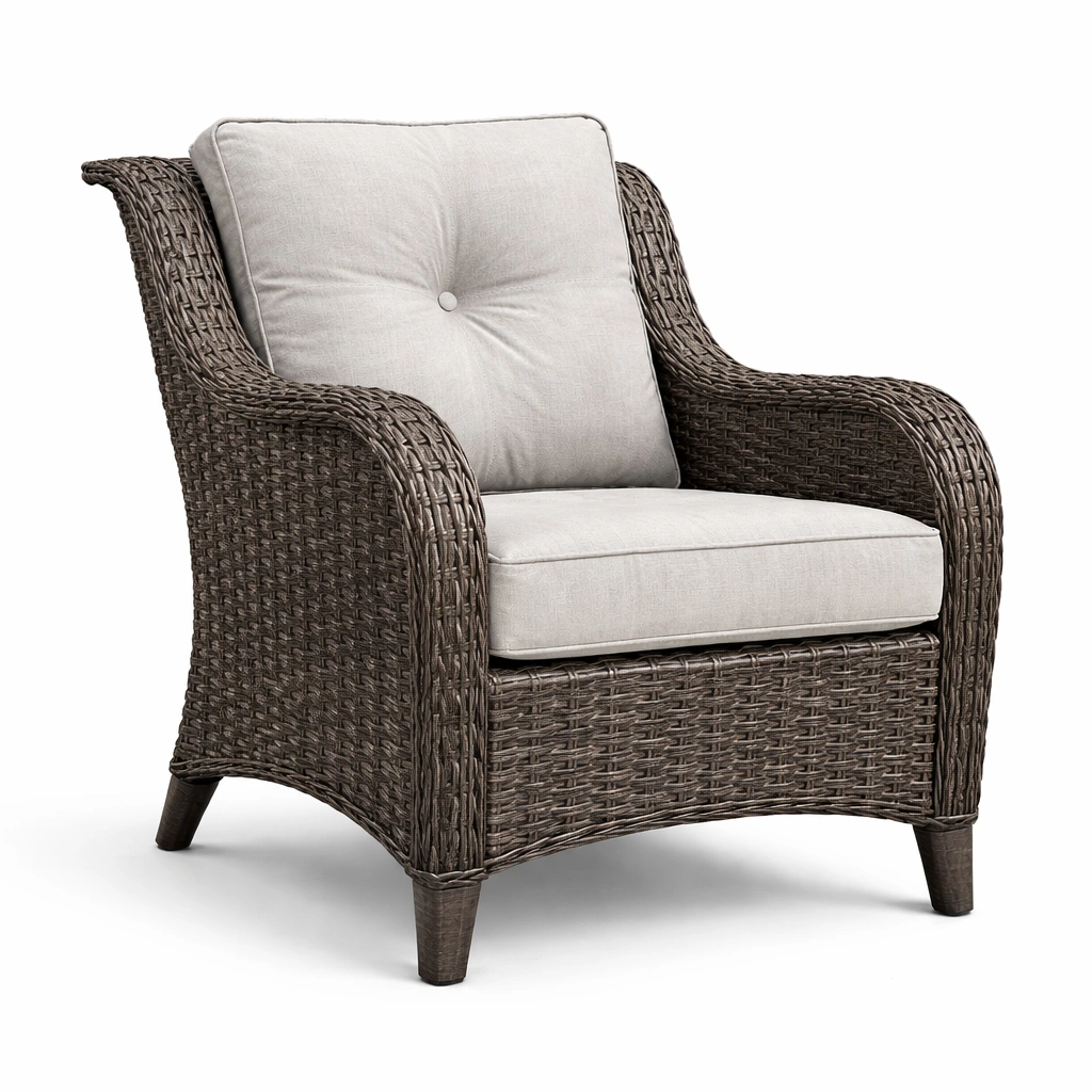 Sessel Polyrattan mit Polyesterkissen Braun Beige